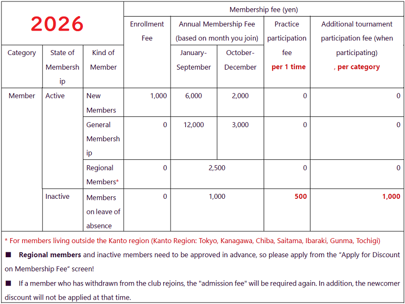 | 入会金 | 年 会 費 | 練習参加費 1回につき |
